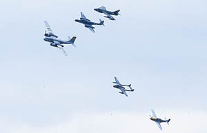 jet, A26 Invader, Vampire and Mustang. An impressive formation flypast was a feature of both