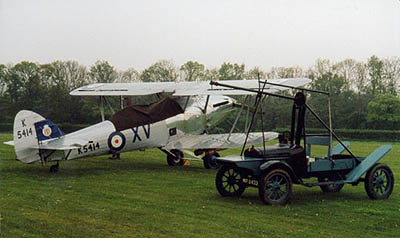 With its L-shaped crowd line and small area, and with the sun lighting the aircraft from behind the spectators, Old Warden is perfect for displaying the veteran aircraft of its own and other collections. Old biplanes banking sharply as they turn on the angle of the 'L' by the control tower make excellent photographic subjects, and the result often looks like a genuine air-air shot. The slipstream whistling in the bracing wires of those old aircraft makes an evocative sound. The display had a theme - the Battle of France. On the far side of the runway the French and Union flags, personnel, vehicles and tents simulated a French airfield in the dark days of 1940. The atmosphere was further enhanced by the presence among the crowd of volunteers in various uniforms of the day, and the commentary by Mark Whall during the flying display was interspersed with recordings of contemporary radio broadcasts such as Chamberlain's sombre announcement of the declaration of war and Churchill's announcement that the Battle of Britain was about to begin.