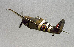 Soon after the display began at around 14:00, however, the sun came out. The Bristol Fighter and SE5 opened the show, flying as a pair in a surprisingly tight formation. Following a break left and right they then flew singly. Now and throughout the programme Mark Whall gave us much history and interesting operational information, though many of us would appreciate a pause while the aircraft are flying past so that the loudspeakers don't drown the beautiful sound of those old engines. A contrast in speed was provided by the Gladiator and Hind flying singly in high-speed passes, then both Hurricanes from the RAF Memorial Flight each performed a run-in and break followed by lazy barrel rolls. Running in from Duxford, Stephen Grey appeared next in the Fighter Collection's Grumman F4F Wildcat, putting on a polished display of fly-bys, rolls and zoom climbs. The distinctive popping sound of the 14-cylinder radial engine was a joy to hear.