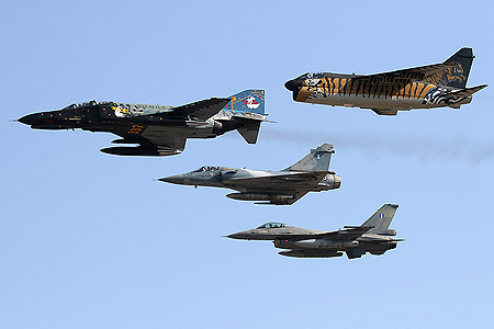 two RF-4Es, four F-16s and four Mirage 2000s flew at breakneck speed all