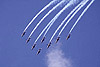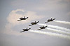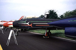 It goes without saying that all the teams performed with their usual panache - leaving every spectator to pick his favorite. The Reds lost out a little in catching the only cloud cover of the day forcing them into their rolling show. Interspersed with the teams were some excellent solo displays including the last, last, last display of the 'Red Draken' from the Austrian Air Force. While taxiing back in front of the ecstatic crowd, Captain Michael Kirchner swung the Draken nose-on to the crowd, stopped, opened the canopy and waved his final delirious goodbyes. Great performances were also given by the pilots of the Italian RSV in the AMX, Tornado, Avanti, Typhoon and MB339. Accolades for best solo display of the day should go to the Dutch F-16 complete with flares, the Hungarian Mil-24 (hardly without flares) and the first appearance, for me anyway, of the new Aeromacchi M346 trainer.