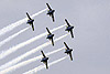 It was very evident that the Italians interpret the display rules that tend to take the thrill out of UK shows today differently, with the aircraft seeming to perform much lower, nearer and with more flamboyance than we are used to. Full performances by the G222 complete with barrel rolls, F-16 and Mil-24 both with the aforementioned flares, lay testament to this. Sadly no 'Team of Teams' this year, but in a final flourish as the Frecce taxied back to dispersal at the close of the show was the lineup of all the pilots from the other teams present adding to the rapturous applause with an impromptu Mexican wave! Whichever team is your favorite, nobody can deny the charisma that is the Frecce Tricolori. Nobody can deny their panache and style, even down to their Latino commentator - who knows his commentary so well that he never refers to a crib-sheet. Here's looking forward to another 45 years - Happy Birthday Frecce!