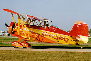 One other attraction is the EAA AirVenture Museum located over by the western entrance to Wittman RAP. Based around a small airstrip of its own, known as Pioneer Airport, the museum is naturally dominated by a number of general aviation types, as well as quite a few aerobatic and homebuild types. However, there were quite a few gems to be found on display which included an early XP-51 Mustang, a P-38L Lightning, a Spitfire IX, a rare North American P-64 and, much to my surprise, even a Mosquito. The museum is open all year round but with a free shuttle service from the main showground there's no real excuse not to take in a quick visit during the show. In relation to the size of this event, the actual flying display in the afternoon is quite modest in comparison. Because of all the aircraft movements throughout each day (it is a fly-in after all) there is no scope for any specific displays as such until mid afternoon. At approximately 15:30 each day the fly-in is temporarily halted to allow for a flying programme of approximately two-and-a-half hours duration. For the most part, this was dominated by a succession of dynamic aerobatic displays from a number of renowned pilots whose chosen mount was either the Pitts Special, Extra 300 or Sukhoi 26. However, two specific routines stood out from all the others. Firstly, an exciting formation display from the four T-6 Texans of the AeroShell Team, then came the remarkable aerobatic antics of Gene Soucy in his Grumman G-164. I'd already had the pleasure of seeing his display one year previously up over the border in Saskatoon, so it was a real delight to see him in action again. Basically a noisy big biplane with attitude - great stuff!