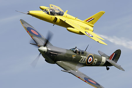 A quick look at the flying programme is a little dispiriting at first - where are the warbirds? Chas was hoping for a good number of Spitfires here at one of its spiritual homes in its 70th year, but only a Battle of Britain Flight example and MH434 are on the bill. B-17G 'Sally B' arrives overhead, so that's one old favourite to look forward to at least. Air Atlantique's fleet fills a significant portion of the afternoon, which is certainly different, but Chas is a bit unsure of its ultimate entertainment potential. Lots of Extras and Su-26s fill the bulk of the flying, something that Chas could really do without - they're usually too small and too far away to hold his attention for very long. Still, he'll give this new team called the Blades a chance as it's crewed by mostly ex-Red Arrow pilots. Aha - there it is, right at the end of the day, the Ray Hanna tribute - Nigel Lamb will fly MH434 alongside a Gnat, piloted by ex-Red Arrow Andy Cubin.