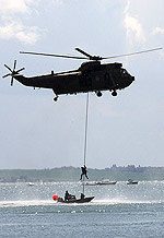 The penultimate show of the day belonged to Harrier GR7, with clouds looming over the seafront the display was kept to low level. Last but not least, a single-seater Typhoon F2 roared down the line with both tubes fully lit, as they are through most of its display. Stunning is one word to describe the maneuverability of this aircraft. That brought to an end the flying display at this years show - missing on the Monday were the Battle of Britain Memorial Flight, Hunter and Canberra. So a good show, but dampened by the weather - let's look forward to next year's show, sponsored by the Westcliffe Casino - I wonder if it'll be sunny? Of course, I wouldn't bet on it!