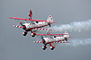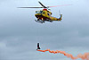 whilst the latter was making its debut Although international participation had been particularly hard to come by this year it appeared in the shape of the RNLAF's colourful AB-412 SAR helicopter from Leeuwarden, making a most unusual display entrance on the Sunday with the winchman performing circus trapeze-type acrobatics whilst holding a flare - you'd never see such showmanship during a similar RAF role demo! A less colourful, though more exotic helicopter was UH-1H G-HUEY of MSS Holdings, a genuine Vietnam war veteran accompanied by one of the pilots who flew her in that conflict, complete with realistic sounding waist machine gun. The only other item on the programme was the Team Guinot wing-walkers who had featured on Robbie Coltrane's 'B Road Britain' TV show just a few days previously. All in all then, despite the least favourable of circumstances, the Yorkshire public were treated to a most entertaining display featuring a wide variety of aircraft. It is understood that approximately 30,000 people attended over the two days, Saturday in particular being very busy with the crowd up by about one third on last year's show. Hopefully this will encourage the organisers to plan for next year, although they will doubtless be hoping for some better fortune with both weather and aircraft availability.