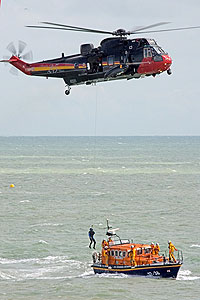 lifeboat, demonstrated the delivery and pickup of a person using the helicopter's