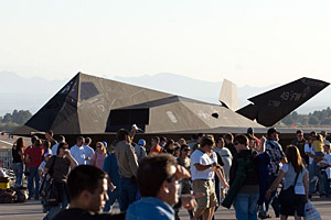 with the 494th Fighter Squadron at Lakenheath where she was The final appearance, both static and flying, was an F-117A from the 49th FW, based at Holloman AFB. With the type now being withdrawn from service and put into dry storage it seemed that Nellis could be the last time the black triangular would be displayed. Since it first came on the scene officially, with that famous photograph from the Pentagon of the 'Wobblin Goblin', clearly Henry Ford had a big influence on the colour selection - always black!