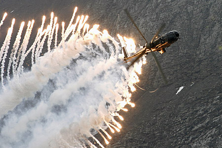 with a veritable Christmas tree. Over a hundred flares are released in