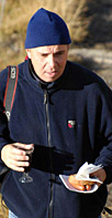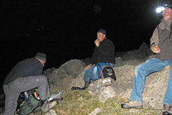 We've heard that it can get quite warm if the sun shines, so as Trinny would say, what to wear? I'm sure I just saw the proverbial brass monkey with a welding iron dart through the torchlight, but the camera gear weighs enough on its own without water, rations and extra clothing. I want to get walking, as the exercise will keep the blood flowing, but even with four layers of clothing the chill seeps into your boots. We're waiting for some of Peter's Dutch friends to join us, so keep an eye out for the twinkle of head-mounted torches. My thoughts turn to a warm bed and the waitresses who served us in 'Hooters' last night… We're on