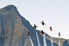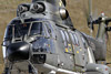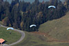 fades after the fifth pass The morning passes with Alouette movements, another round of F-5s and F-18s, each time the light getting better until the whole valley is bathed in sun. From midday the Cougars start to ferry VIPs and more Bratwurst ready for the afternoon's airshow rehearsal, due to kick off at half-one. It's also a time to kick off the boots and review the morning's bag of images, as one-by-one heads settle down across the hill. It's also time to reposition to Tschingel, the middle of the three hills. The rehearsal