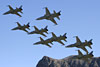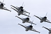 Patrouille Suisse F-5E alongside. The Tiger is pulling a target some two