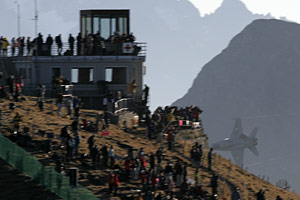 It's now two, and the Cougar rears over the tower, spraying its flares as if it was the fifth of November (probably lost on the Swiss, though). The next two hours pass in a flash, and as the Patrouille Suisse head skywards, also spraying the sky with flares, the hill once again becomes a living, moving mass as the eight thousand immediately head towards Brau. It's a race for many to reach the single ski lift first - it will save an hour and a half or so of walking, but the wait could be double that. There's time to reflect and let the queue subside - it's been an awe-inspiring trip, made the better by some superb weather. That's the trick card, because it could have been a white-out all week. It's something you have to do once, perhaps not every year, as there's little variety in the format. But if you can walk up a flight of stairs, you can make it - just go before it's too late.