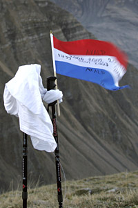 in. Eventually the path flattens out and the welcome sight of four portaloos slowly emerges from the top of the hill. Never have I been so glad to see a blue sh*tbox! They're empty now, but Peter warns it's a different situation by Thursday afternoon. They have been flown in by Alouette from Meiringen, only a couple of minutes down in the valley below, a task that a fledging Swiss airman probably doesn't have in his vision when he signs up. "Your mission today is…" We're on