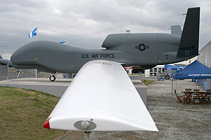 Clearly military aviation has moved into the UAS technology in a big way and this must shape the future of shows like Farnborough. Heavy investment in this sector is not directed to airframe design for the most part - what is currently required is payload capacity, long loiter times and ever improving means of control. For most of the current generation of UAV developments the real money is spent on the avionics payload, system control, communications, system integration, increasingly armament, infrastructure and support. Thus in the long term although the UAS sector will attract huge investment, attention and continue as an increasing focus, it is of course unlikely to convert into flying demonstrations. Perhaps manufacturers will have to become more creative and present their various systems and products output at the show whilst their UAVs are flying thousands of miles away? On Wednesday 16 July, keen to demonstrate the industry's green credentials, SBAC hosted a 'Sustainable Aviation Conference'. A number of keynote speakers made much of the industry's efforts at noise and pollution reduction over the years and as Ian Godden, SBAC Chief Executive said "Aviation is unfairly portrayed as the bogeyman of the climate change debate. Our opponents will not acknowledge that we are a small part of the problem and that we are doing a considerable amount to reduce our impact on the environment while simultaneously meeting the rising public demand to fly." Public Days Visitor statistics for the show were also impressive - attracting over some 132,000 business visitors and 153,000 public visitors on the final weekend, an increase of 23,000 to 2006 totals, perhaps swelled somewhat by the cancellation of RIAT? Certainly the public areas felt crowded enough with most of the aircraft on static display generally parked as inaccessibly as possible, making photography in most instances challenging and in many instances impossible. Military items in the static were few and far between, apart from the small American enclave (48th FW F-15C, USN F-18F, T-1, C-17 and C-130J). The RAF participation in the static park - a pair of 111 Squadron Tornado F3s and an 11 Squadron Typhoon was almost matched by the Slovak Air Force with their pair of MiG-29s, hemmed in by barriers. A Pakistani-marked Saab 2000 AEW aircraft was welcome, as was the German Pollution Control Do228 and Swedish Coast Guard DASH-8 Q311. By the weekend several of the participating aircraft from the trade displays, including the Israeli Air Space Force Gulfstream G550 CAEW and the RAF Sentinel, had gone. The sprawling