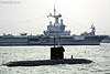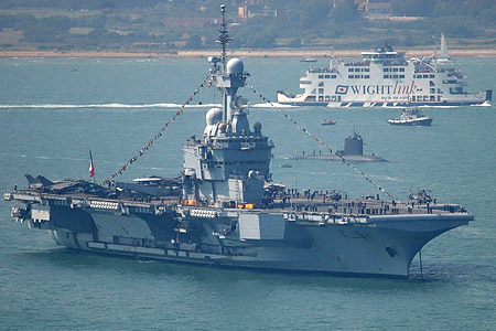 the 40,000 ton nuclear-powered P.A. Charles de Gaulle dwarfed all