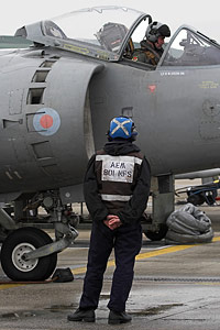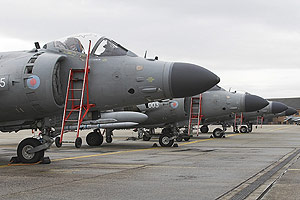 Even though 801 Naval Air Squadron flew its last tactical mission on 23 February, the unit will keep flying right up until the final day, practising for the final flypast at the decommissioning parade on Tuesday 28 March. The following day will see the remaining five aircraft flown for the very last time as they are delivered to RAF Shawbury for temporary storage. As a last presentation to the aviation press, a photoshoot was organised for Tuesday 14 March, although leaden skies added to the grey mood of the impending retirement. On 1 October 2006, 801 Naval Air Squadron will once again stand up, this time equipped with the Harrier GR7/9. The Harrier Force will then consist of four front-line squadrons, two predominantly manned by the Royal Navy and two by the Royal Air Force. The Harrier GR variant provides superb offensive capability and has been proven in the Falklands, Bosnia, Sierra Leone, and the Gulf and currently in Afghanistan by providing power projection from land and sea bases. Full operational capability will be declared by 1 April 2007.