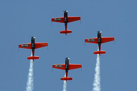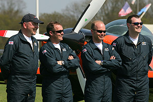 Dave Eade reports on the airshow circuit's newest display team Take a man who is about to leave the Royal Air Force after some twenty-two years, during which he has been solo Jet Provost and Harrier demonstrator, spent three years as a member of the Red Arrows before becoming their leader and then going on to lead a front-line Harrier unit (4 Squadron) to war in Afghanistan. Add to this obvious level of supreme leadership skills two further ex-Red Arrow pilots, who have both seen active service, along with a civilian pilot who has over 3,700 hours on sixty types, including aerobatic training. Have four Extra 300LP aircraft built to your specification and you surely have all the ingredients for a world-class aerobatic team.
