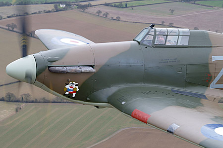 Air-to-air pictures courtesy of Kev Baxter Deep in the heart of rural Suffolk is a small workshop that punches well above its weight, restoring Hawker Hurricanes to their former glory. The latest to take to the skies once more is former Sea Hurricane XIIA BW881, now wearing the colours of '5429/Z', representing a Canadian Home Defence machine from 135 'Bulldog' Squadron, Royal Canadian Air Force. BW881 was originally built in Canada, so the markings are appropriate in that respect, its service life being entirely with the RCAF. Rebuilt over the last five years by Hawker Restorations at their Milden workshop near Sudbury, BW881 took to the air once more at Wattisham Airfield on 15 March, as the airstrip at Milden is too small to safely operate a rebuilt aircraft on its first flight. Now registered G-KAMM, BW881 has been rebuilt with a Packard 224 and Hamilton standard hydromatic propeller. It is fitted with eight browning machine guns, including ammunition, ammo boxes, and original valve radio equipment, making it one of the most authentic rebuilds yet completed by Hawker Restorations. The weaponry will not be fitted for the transfer to the USA due to customs implications, however. At an estimated cost of £1.5 million, the aircraft will depart to the USA and its new owners, the Flying Heritage Collection based at Arlington airfield near Seattle. Established by Microsoft entrepreneur Paul Allen in 1998, the collection is rapidly establishing itself as one of the leading historic aircraft movements in America. Taking G-KAMM for its first post-restoration flight was reknowned pilot Stu Goldspink, a familiar name to many from his regular airshow appearances at Duxford flying The Fighter Collection's aircraft, in particular the P-47D Thunderbolt. Of G-KAMM, Stu said "This is back-to-basics flying. You don't really need any of the instruments in there - you can tell what it is doing by the feel of it." Hawker Restorations is a sister company to AJD Engineering, formed by Tony Ditheridge, well known for his restorations and replicas of World War One and classic aircraft. HR was formed specifically to rebuild Hurricanes, and was created in co-operation with Sir Tim Wallis of the New Zealand-based Alpine Fighter Collection, who originally procured BW881. Hawker Restorations can now manufacture its own wings, which are fitted to G-KAMM. Thanks to RQHI 4 Regiment, OC 654 Sqn, AAC and in particular to SSgt M Derbich and Stu Goldspink, the pilots for the sortie, without whom the shoot would not have been possible.