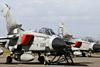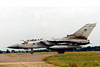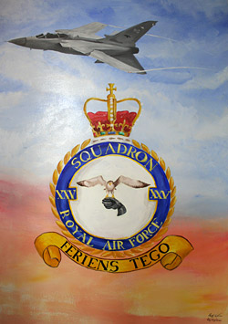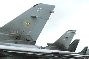 fighter squadrons to survive the infamous Duncan Ultimately it was forced to join the ranks of the unmanned missiles when, following disbandment at Leuchars in 1962, it was reformed at North Coates in Lincolnshire as a Bloodhound missile squadron. A move to the sharp end in RAF Germany in 1970 was probably the highlight of the Squadron's missile era where it provided the short range air defence of the three 'clutch' bases of Bruggen, Laarbruch and Wildenrath. The need to bolster the UK's air defences in the face of increased threat posed by the Warsaw Pact in the 1980s led to the introduction of a new long-range interceptor in the shape of the Panavia Tornado F3 plus the development of a new operating base to house a Wing of these at RAF Leeming in North Yorkshire, the location being selected by the need to bridge the Humber-Forth gap, identified by an analysis of the results of air exercises. Following the establishment there of 11 and 23 Squadrons, the identity of the third squadron was cloaked in some secrecy and when its first aircraft was photographed with a question mark alongside the first letter of the tail code in the summer of 1989, speculation inevitably increased. When Flt Lt Ian Black flew that same aircraft, ZE858/FB, resplendent in new 25 Squadron markings into Finningley Airshow that September the cat was well and truly 'out of the bag'. Although the Squadron was not officially stood up until October, when the standard was transferred, it joined in that month's 'Elder Joust' air exercise despite not yet being declared combat ready - it was eventually declared as such to SACEUR following a short work up that December. The following