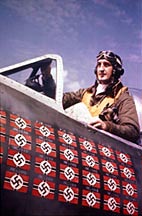 By the autumn of 1944 the Eighth Air Force dominated the daytime skies over Germany. Across East Anglia, their huge formations took time to build safely, leaving hundreds of white condensation trails (contrails) in their wake. "My most memorable sight was in February 1945," said Roger. "It was a freezing morning with excellent visibility. Two columns of bombers were going out; one overhead and the other over Suffolk, which I could see by the contrails. I counted twenty-eight formations, and knew there'd be about forty planes in each. So I was looking at more than a thousand planes - ten thousand men - going to war." It was a spectacle that made the sixteen-year-old farmhand decide that, one day, he would try to write a book about what he'd seen. The colours, too, made the spectacle. Eighth Air Force planes arriving after the spring of 1944 were left in their shiny metal finish but for areas of bright colours and patterns for unit identification. "They looked like knights in armour - the same sort of heraldry was there," said Roger. Then they were gone. With victory in Europe, most of the US Eighth Air Force packed its kitbags, deserted the airfields and took its planes to be scrapped. The men who had survived wanted to go home and get on with their young lives. Roger Freeman, too, was setting out on a career on the family farm, taking it over in 1959. But his ambition to chronicle the Americans remained. He started writing for a local paper on features and agricultural issues and, in the 1950s, became a regular name in aviation magazines. He contributed to his first book in 1961. All this time he had been collating material for his book, stealing time from farming to research at the Imperial War Museum in London and corresponding with veterans in the States. Aided by his wife, Jean, he also scoured archives sent over by the US authorities. By the late 1960s the book was ready. Roger's UK publishers, not confident of its success here, insisted it also have an American publisher. With the presses ready to roll first in the US, a message reached Dedham from across the Atlantic - the publishers were not happy with its long title. Roger recalls he had an hour to come up with something shorter. "All I could manage was The Mighty Eighth," he said. Thirty-plus years and 100,000 copies of the book later, the term is widely used. Even the current US Eighth Air Force - America's primary air strike force - prefixes itself as 'Mighty'.