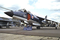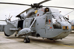 In some cases the changes to the appearance of aircraft types brought about by the Falklands War were not attributable solely to the new equipment fits developed for them but also to new colour schemes that were applied. For Naval aircraft in particular, the war brought about a permanent colour change - ever since the sixties, carrier-borne aircraft had worn a standard colour scheme of blue-grey upper surfaces with white lower surfaces and lettering, and brightly-coloured markings. The SHAR entered service in this scheme but during the journey south was given a more menacing appearance by the application of an overall dark sea grey colour with black lettering (no unit markings) and two-tone roundels, causing the Argentinean pilots to christen it 'La Muerte Negra', which means 'Black Death', a wholly appropriate title in view of the toll of them which it took (twenty confirmed kills). A similar colour scheme was applied to the RAF Sea Kings of 202 Squadron, which was deployed to perform SAR duties after the Islands were recovered. This was due to the fact that as there was no formal end to hostilities, the area technically remained a war zone although it would appear from a recent photo of Falklands-based Sea King in RAF News that this practice has now ceased. The first