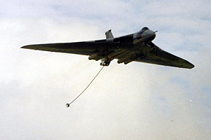 The main deficiency was the lack of a means for transferring the fuel to another aircraft, but this was remedied by grafting a metal box-like fairing under the tail to house a Hose Drum Unit (HDU). The result was an (almost) instant single point tanker, the modification taking BAe Woodford less than a month to produce, test and deliver the first aircraft to Waddington for use by a reprieved 50 Squadron. A total of six aircraft were modified and successfully filled the tanker gap for a couple of years until they were finally retired in 1984 when the VC10 tankers entered service.